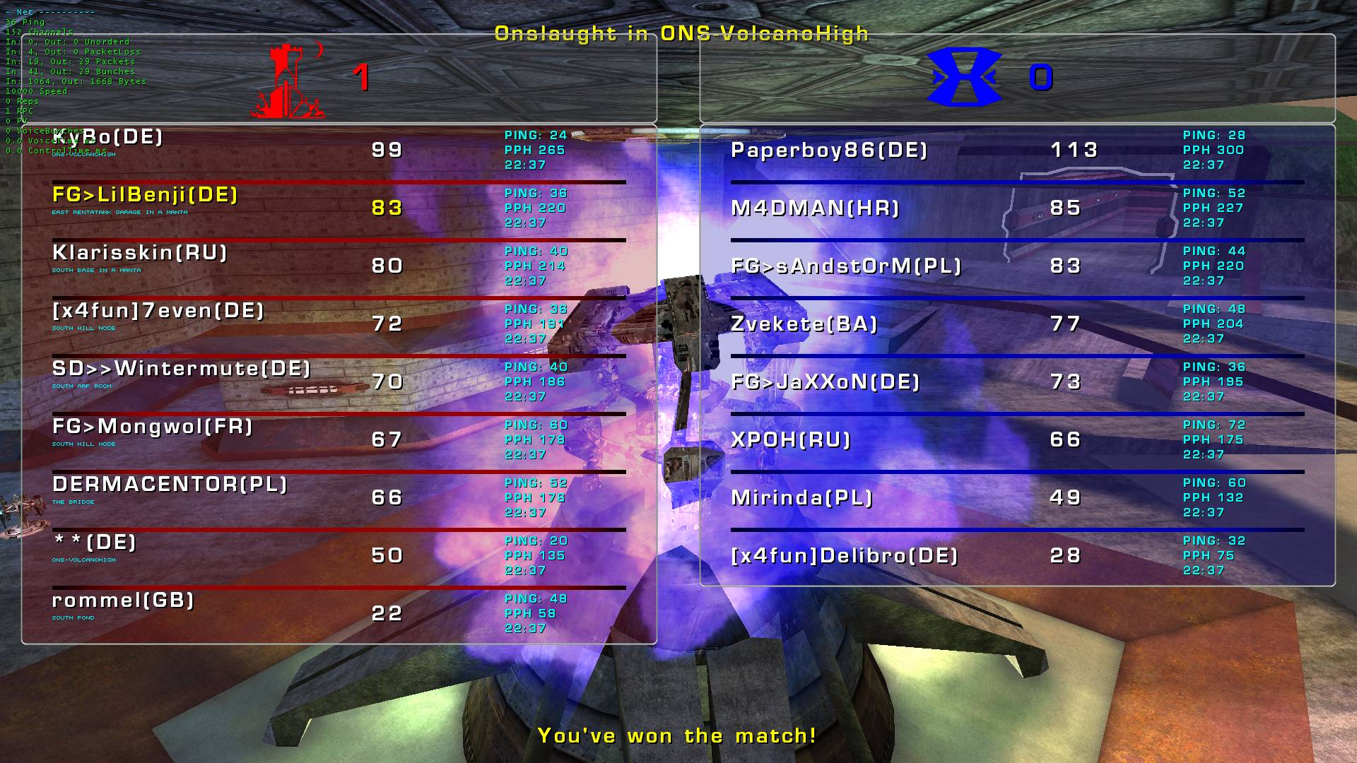Behind the scenes, Benji and me are trying to optimize the map cycle to give the ONS Night audience the best experience, an over ten years old game can provide. There are so many great ONS maps out there, but there are also many maps with flaws that are not easily discoreved when trying them synthetically without playing a real match.